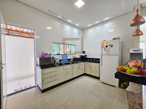 01 sala de estar / TV integrada a sala de jantar | 01 cozinha planejada| 03 dormitórios sendo 01 suíte com espaço para closet | 01 banheiro social | 01 banheiro externo|01 quarto externo | dispensa | área de serviço | 02 vagas de garagem