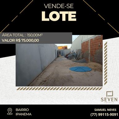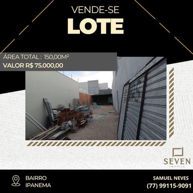 ✨excelente lote disponível para vendo no bairro Ipanema. 🌟 📐 Dimensões e Detalhes: Área Total: 15 x 30 = 150,00m² 💰 Valor: R$ 75.000,00