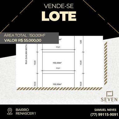 ✨3 lotes Excelentes disponíveis para venda no bairro renascer 1. 🌟 📐 Dimensões e Detalhes: Área Total: 10x15 = 150,00 m² 💰 Valor: R$ 55.000,00 CADA