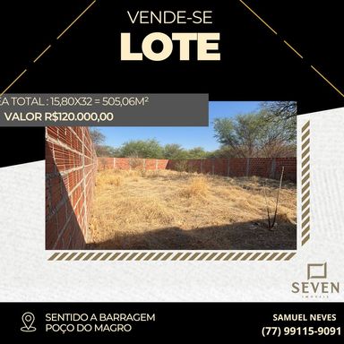 ✨Excelente Lote disponível para venda sentido o poço do magro. 🌟 📐 Dimensões e Detalhes: Área Total: 15,80X32 = 505,06 m²