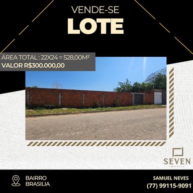 ✨Excelente Lote disponível para venda no bairro Brasília próximo a rotatória. 🌟 📐 Dimensões e Detalhes: Área Total: 22X24 = 528,00m² m²