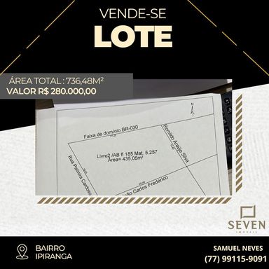 ✨Excelente Lote de esquina disponível para venda no bairro Ipiranga. 🌟 📐 Dimensões e Detalhes: Área Total: 736,43 m²