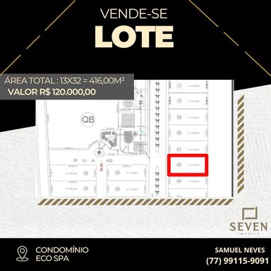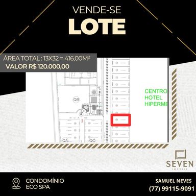 ✨Excelente Lote disponível para venda no Condomínio ECO SPA. 🌟 📐 Dimensões e Detalhes: Área Total: 416,00 m² Quadra: D Lote: 6