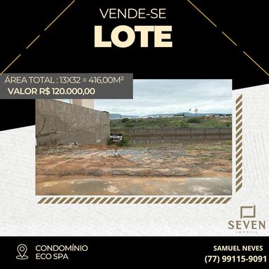 ✨Excelente Lote disponível para venda no Condomínio Eco Spa. 🌟 📐 Dimensões e Detalhes: Área Total: 416,00 m² 💰 Valor: R$ 110.000,00